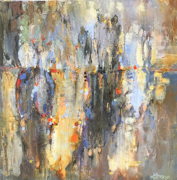 Living in the Shadows is an abstract painting representing life since Covid. Our lives have been turned upside down – we’re still living colorful, joyful & connected lives … but the color, joy and connections are not as vibrant and strong… life feels more like we are living in the shadow of what our lives were like pre-Covid.