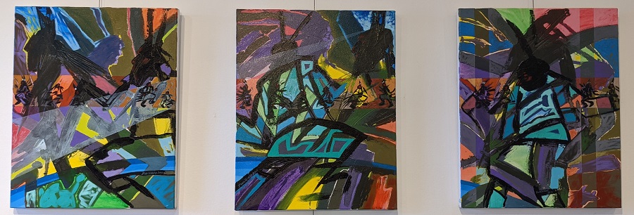 ArtistJerry WhiteheadExhibitCedar Sage & SweetgrassSet of 3, Times, 2016Acrylic on Canvas3" x 16" x 20" Jerry WhiteheadCree$1,500