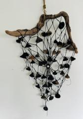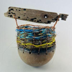 Pit fired Nex̱wlélex̱wm clay, salvaged nylon rope fibers, horse hair, copper wire, shipworm eaten teak boat rail |