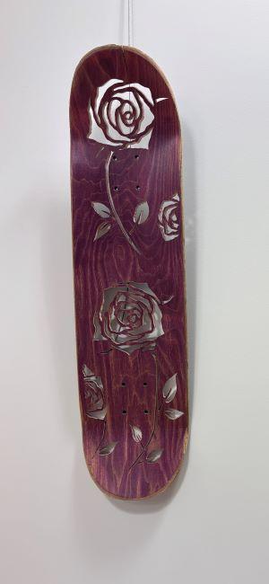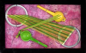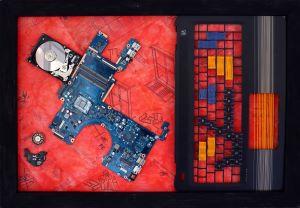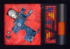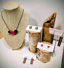 Pit fired Nex̱wlélex̱wm clay, enameled copper wire, salvaged teak boat deck wood |