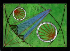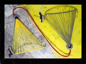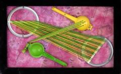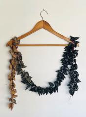 Nex̱wlélex̱wm clay, beach salvaged nylon rope, epoxy, gold powder, waxed twine |