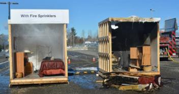Don't miss the live fire sprinkler demonstration at 1pm! Watch a live, side-by-side fire demo showing the difference between what can happen in a fire when you have a sprinkler and when you don't!