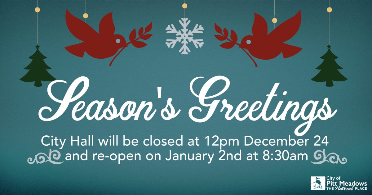 From Mayor, Council, and the Staff of the City of Pitt Meadows, we wish you and your families a very Merry Christmas, and a healthy and happy 2020!