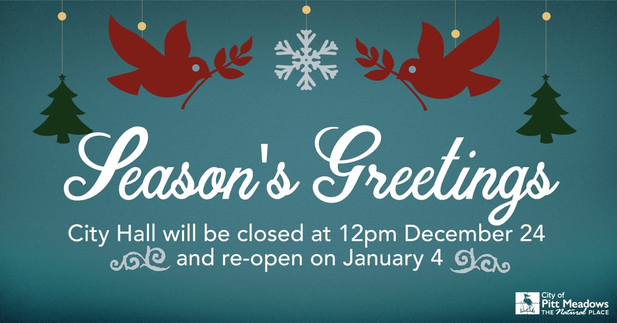 From Mayor, Council, and the Staff of the City of Pitt Meadows, we wish you and your families a Happy Holidays, and a healthy New Year!