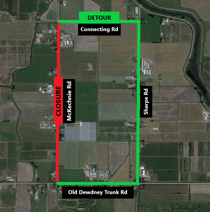 August 9, 2021 – Please be advised, there will be road closures on McKechnie Road between Connecting Road and Old Dewdney Trunk Road from August 11 to September 30 for road rehabilitation work. This work is weather dependent and subject to change.