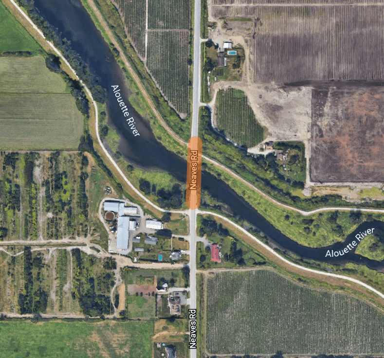 June 25, 2021 – Please be advised, there will be ongoing alternating single lane closures on Neaves Road at South Alouette Bridge from June 28 to July 3 between 7am and 5pm for crossing improvements.
