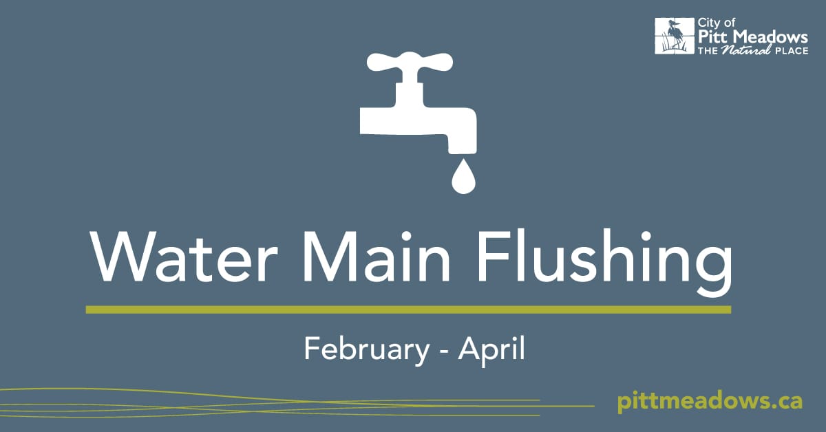 January 23, 2020 - The City of Pitt Meadows Public Works Department will be flushing water mains for approximately twelve weeks beginning February (weather dependent).